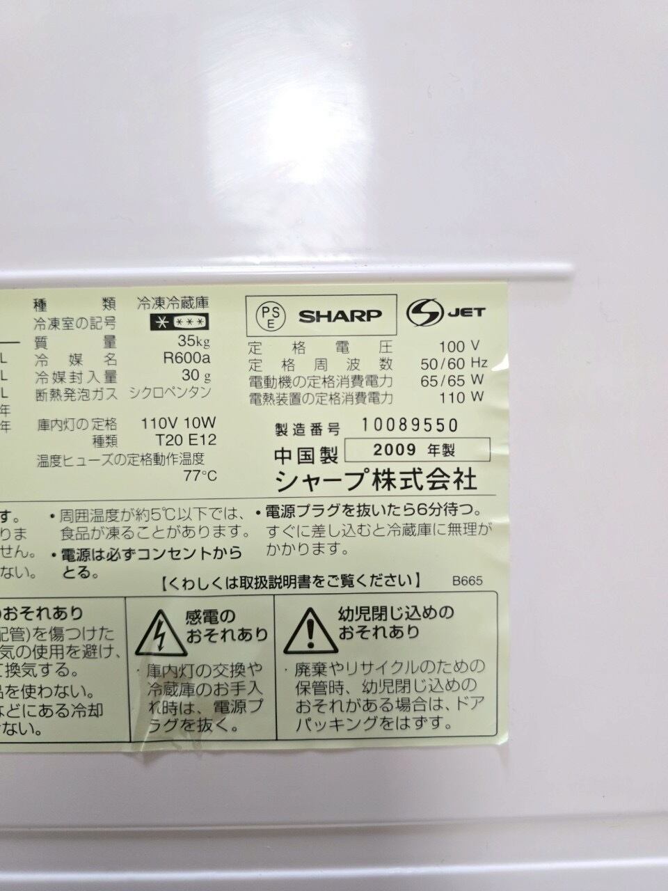 [1098]SHARP, refrigerator, made in 2009, 冰箱