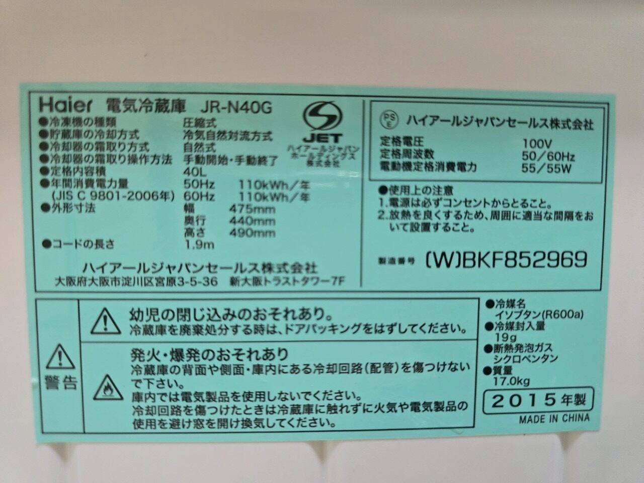 [1110]Haier, refrigerator, JR-N40G, made in 2015, 冰箱