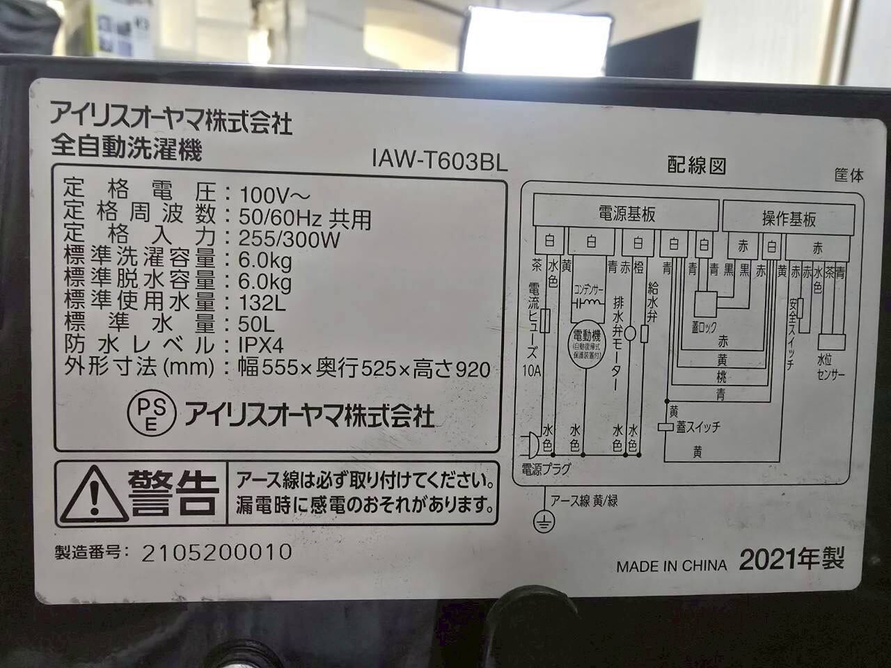 [1155]IRIS OHYAMA, washing machine, IAW-T603BL, made in 2021, 洗衣機