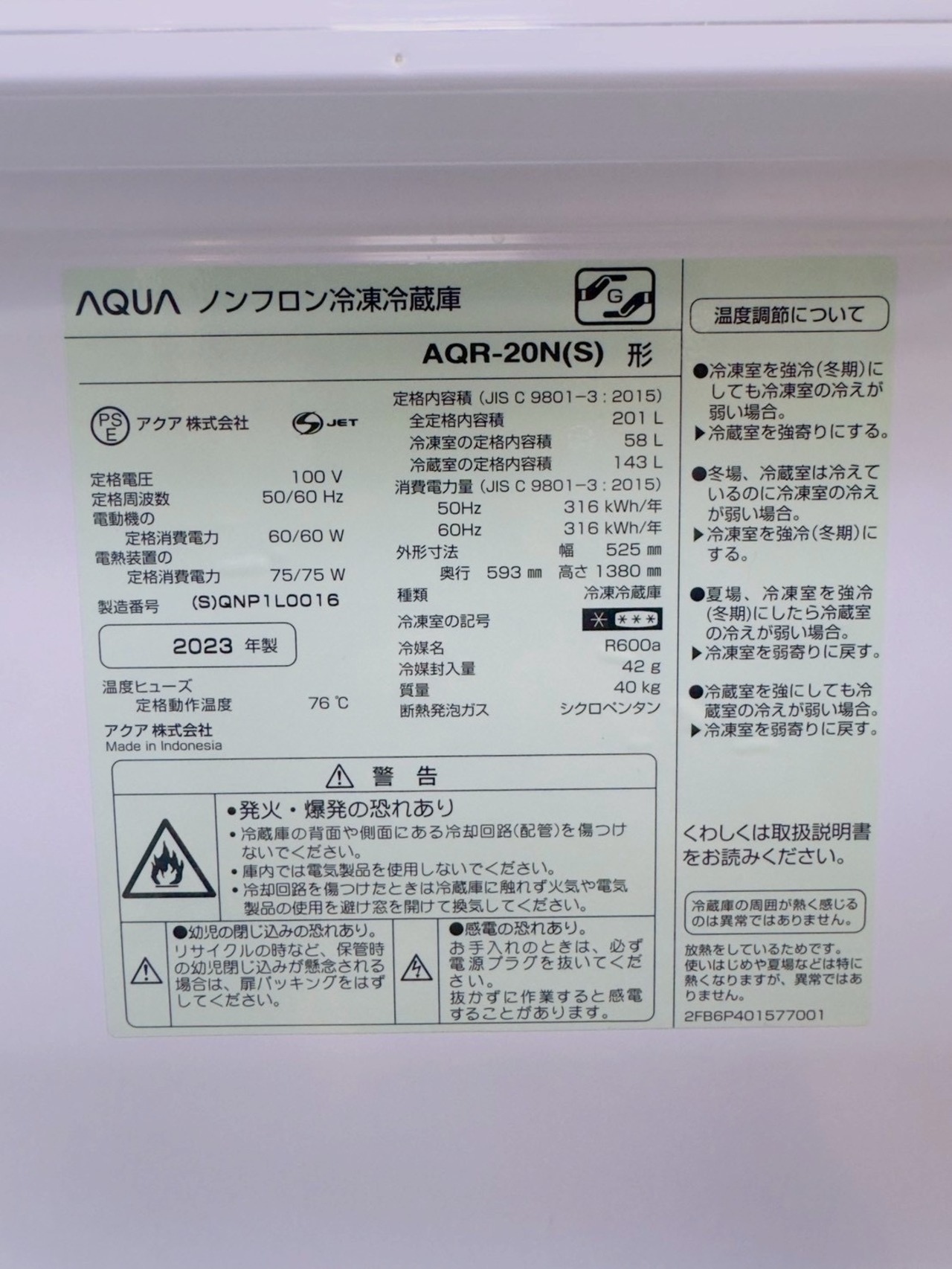 [1189]AQUA, refrigerator, AQR-20N(S), made in 2023, 冰箱